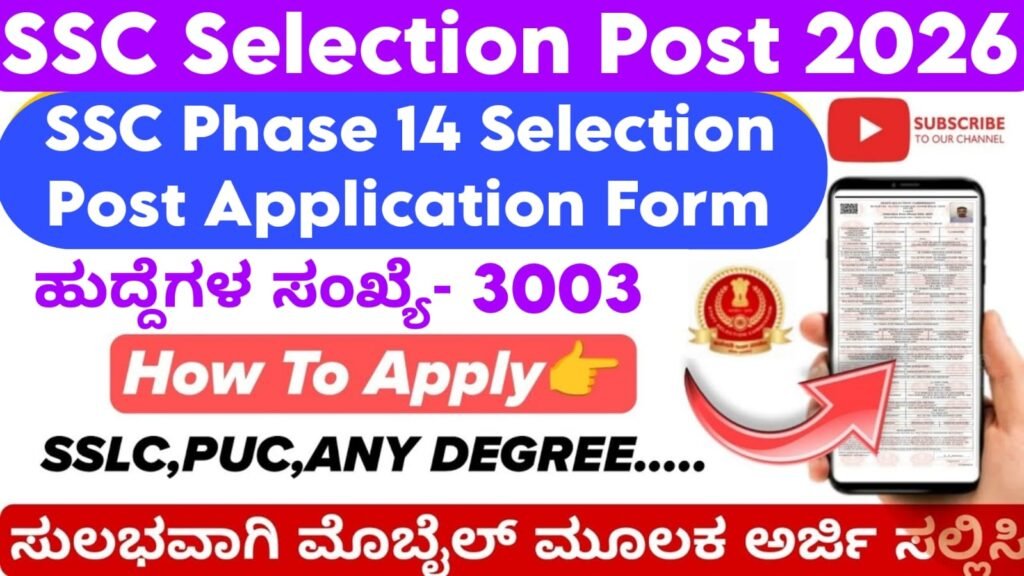 SSC Selection Post Phase 14 Recruitment 2026 – 3003 Posts Apply Online Complete Details Introduction Government job ಹುಡುಕುತ್ತಿರುವ ಅಭ್ಯರ್ಥಿಗಳಿಗೆ ಇದು …