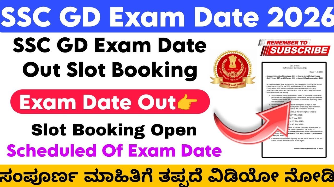 SSC GD Constable exam ಗೆ prepare ಆಗ್ತಿರೋ candidates ಗೆ finally big update ಬಂದಿದೆ. Staff Selection Commission ಈಗ official ಆಗಿ SSC GD Constable Exam Date 2026 announce ಮಾಡಿದೆ. ಈ recruitment ಗೆ apply ಮಾಡಿರುವ ಎಲ್ಲ candidates ಗೂ ಇದು very important stage ಆಗಿದೆ.