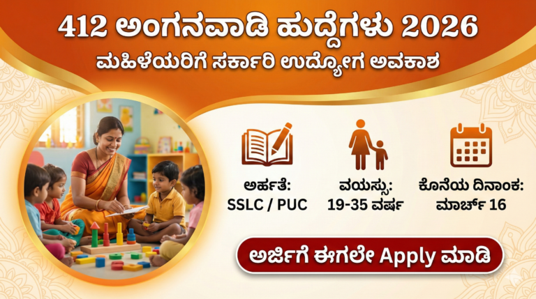 Kalaburagi Anganwadi Recruitment 2026: 412 ಹುದ್ದೆಗಳ ಭರ್ತಿ – ಮಹಿಳೆಯರಿಗೆ ಸರ್ಕಾರಿ ಉದ್ಯೋಗ ಅವಕಾಶ